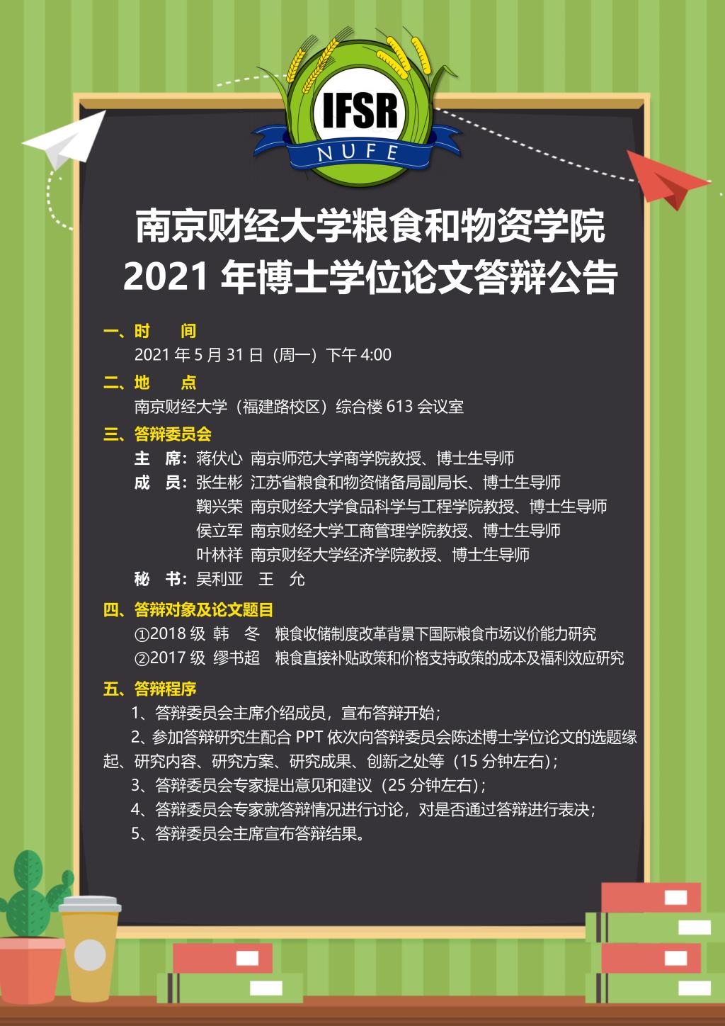 yl23411永利集团官网2021年博士研究生学位论文答辩公告