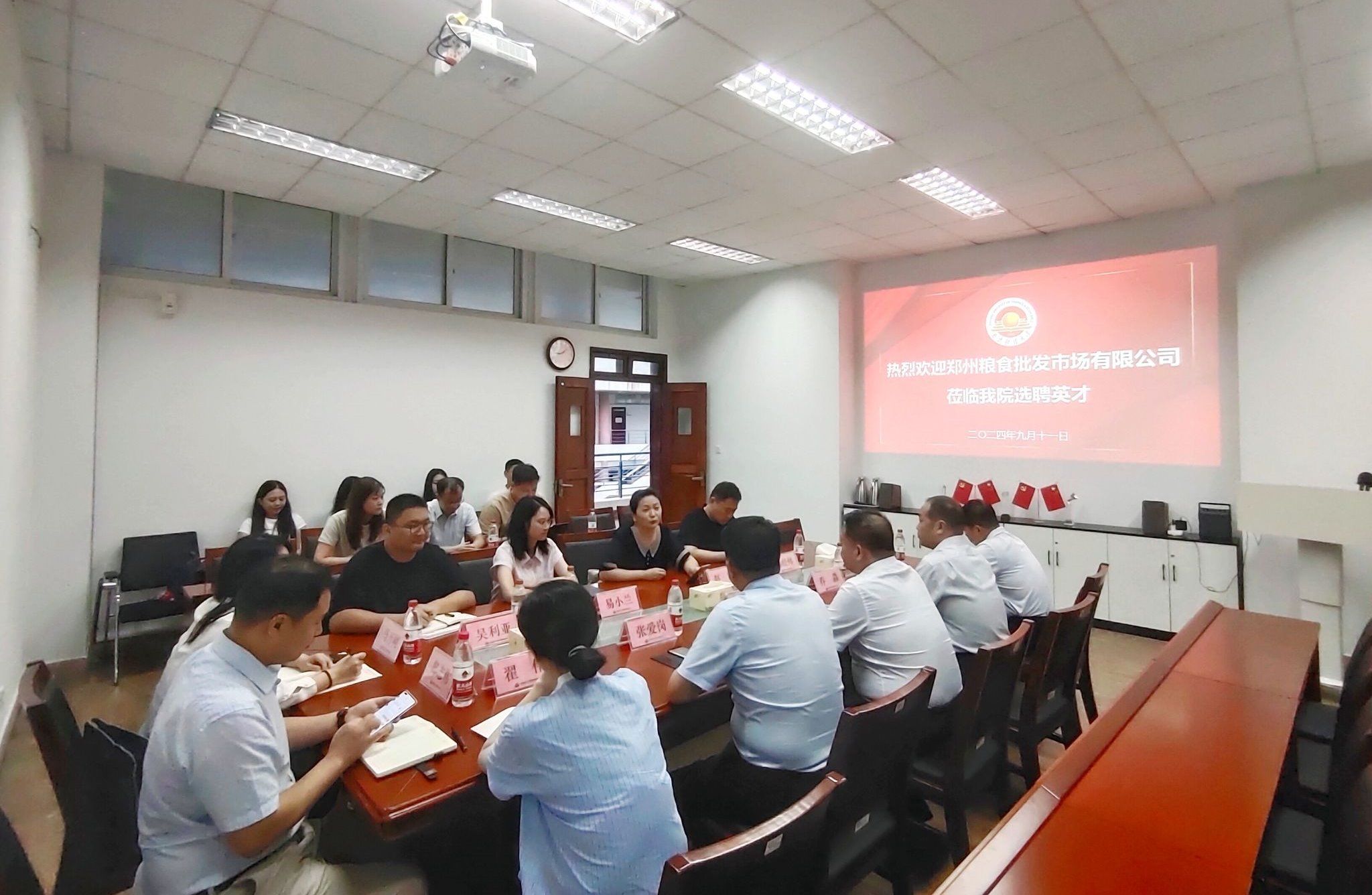 9月11日上午,郑州粮食批发市场有限公司总经理王凯一行来我院选聘2024届毕业生。招聘宣讲会在艺术楼402会议室举行。我院应用经济学专业应届博士毕业生参加了此次招聘宣讲会,活动由我院院长赵霞主持。