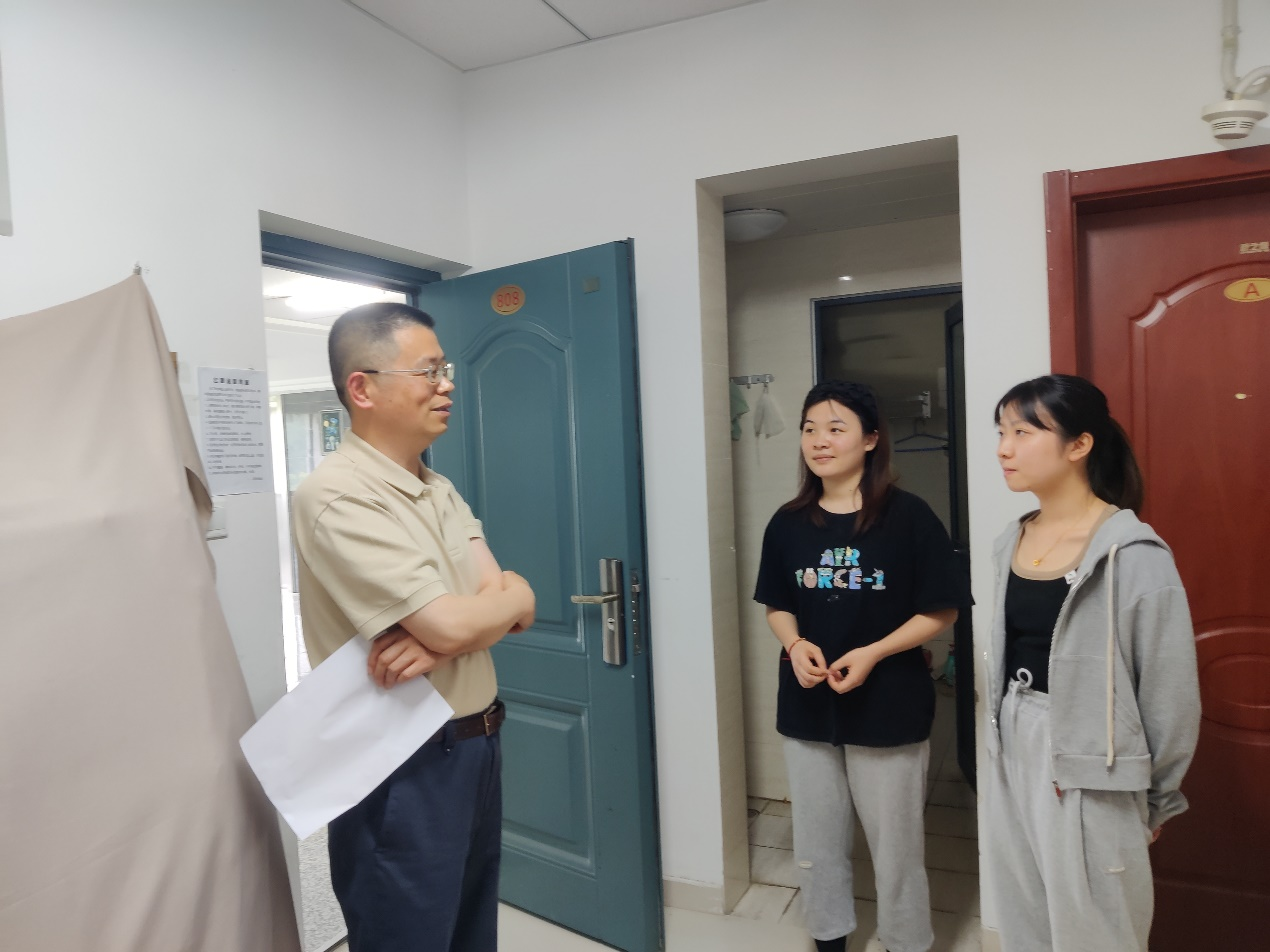 为推动党史学习教育走深走实,不断将党史学习教育成果转化为我为群众办实事的具体举措,深化落实“两在两同”建新功行动,5月26日下午,yl23411永利集团官网党总支书记、硕士支部政治辅导员张圣兵,硕士生支部书记、班主任刘婷走访学生宿舍,排查安全隐患,与毕业班学生近距离交流共同,听取学生意见、解答学生困惑、指导学生发展。