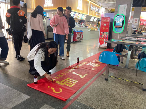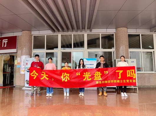 2020年10月16日是第40个世界粮食日,当天我院硕士党支部在校中苑食堂成功开展“今天,你光盘了吗?”爱粮节粮宣传教育签名活动,支部书记刘婷及硕士支部成员共同参与本次活动。
