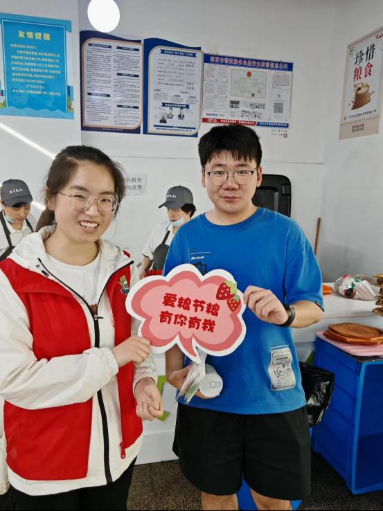 党支部成员们在仙林校区中苑食堂餐盘回收处身穿统一的志愿者服装,手持宣传标语,热情地向过往师生介绍活动的意义和目的。邀请光盘的师生合影留念并为他们送上纪念品。随着快门的不断响起,一幅幅充满正能量的照片被记录下来。这些照片不仅展现了师生们对节约粮食的积极响应,更传递出了一种积极向上的生活态度。