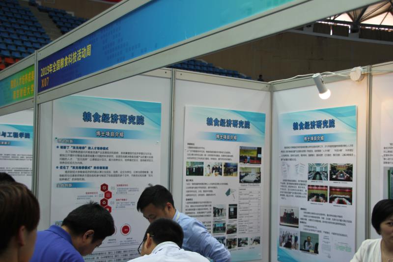 科技和人才展览环节,我院共有国家粮食安全预警指标体系建设研究、粮食产后损失浪费调查及评估技术研究以及院校人才培养成果展示三个项目。其中院校人才培养成果展集中汇报了我院研究团队成果、博硕士人才培养情况以及取得的一系列成果。国家粮食安全预警指标体系综合运用粮食安全理论、信息系统理论和预测决策理论,重点解决国家层面的粮食安全预警指标体系的可应用难题,获得国家粮食安全预警指标体系集成技术。粮食产后损失浪费调查及评估技术研究以科学调查评估粮食产后损失浪费状况、提出有针对性的节粮减损措施为目标,研究适应我国粮食产后系统模式的粮食损失调查评估的方案和对策,促进节粮减损,增进粮食安全。参观领导与群众都对此表示高度认可。