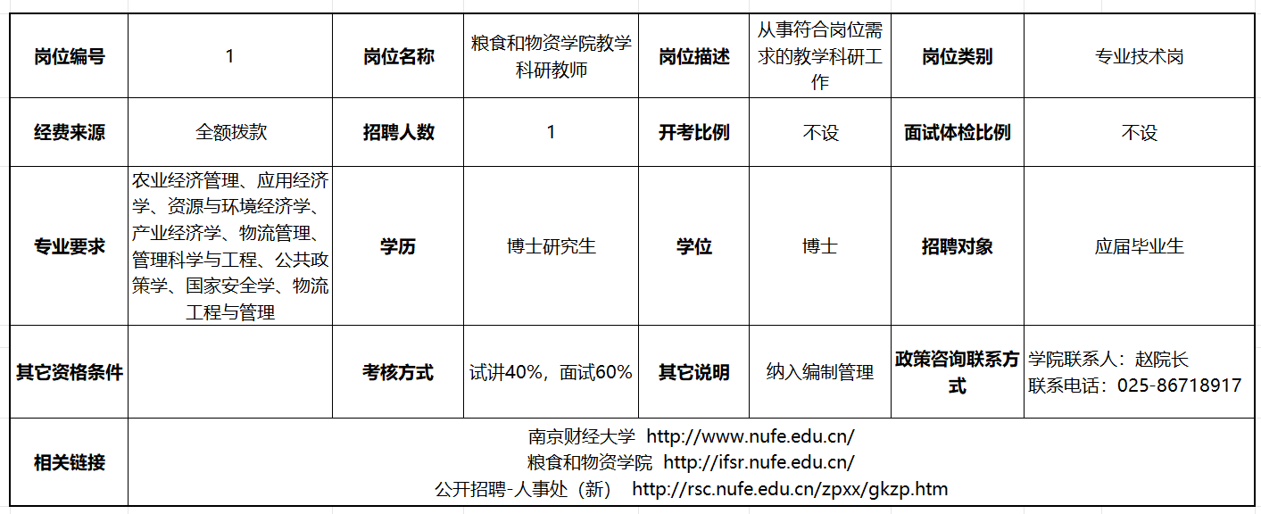 yl23411永利集团官网是国内普通高校中首个面向我国粮食和物资行业开展人才培养、科学研究和社会服务的学院。前身是1988年国家商业部批准设立的南京粮食经济学院粮食经济研究所( 2008年更名为南京财经大学粮食经济研究院)。作为国内高校中最早设立的聚焦粮食安全战略、粮食流通与物资储备、粮食产业发展等研究领域、为国家粮食宏观调控、物资储备管理、粮食政策科学化提供决策支持的专门机构,我院长期以来持续面向粮食和物资储备行业开展人才培养、科学研究、行业服务和决策支持,为国家粮食安全和现代粮食流通产业发展做出了积极贡献,在全国粮食行业有着广泛影响和良好声誉。为更好地选拔优秀适岗人才,充实人才队伍,优化师资结构,我院现面向社会公开招聘优秀人才,其中教学科研岗2名,师资博士后3名。现将相关情况介绍如下: