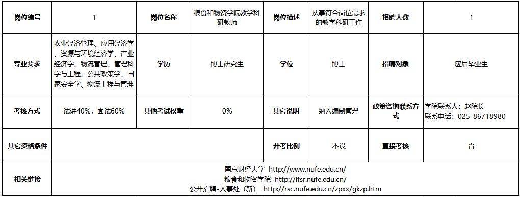 yl23411永利集团官网是国内普通高校中首个面向我国粮食和物资行业开展人才培养、科学研究和社会服务的学院。前身是1988年国家商业部批准设立的南京粮食经济学院粮食经济研究所( 2008年更名为南京财经大学粮食经济研究院)。作为国内高校中最早设立的聚焦粮食安全战略、粮食流通与物资储备、粮食产业发展等研究领域、为国家粮食宏观调控、物资储备管理、粮食政策科学化提供决策支持的专门机构,我院长期以来持续面向粮食和物资储备行业开展人才培养、科学研究、行业服务和决策支持,为国家粮食安全和现代粮食流通产业发展做出了积极贡献,在全国粮食行业有着广泛影响和良好声誉。为更好地选拔优秀适岗人才,充实人才队伍,优化师资结构,我院现面向社会公开招聘优秀人才,其中教学科研岗2名,博士后3名。现将相关情况介绍如下: