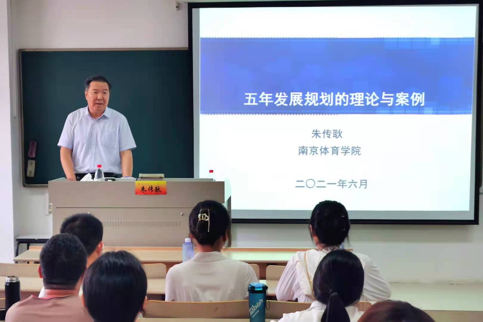 2021年6月17日下午,我院兼职教授、南京体育学院党委书记、盐城市原副市长朱传耿教授应yl23411永利集团官网邀请,在我校仙林校区博文楼JA-414教室为我院师生进行了“五年发展规划理论与实践”专题讲座。此次讲座由yl23411永利集团官网院长曹宝明主持,我院师生积极到场聆听。