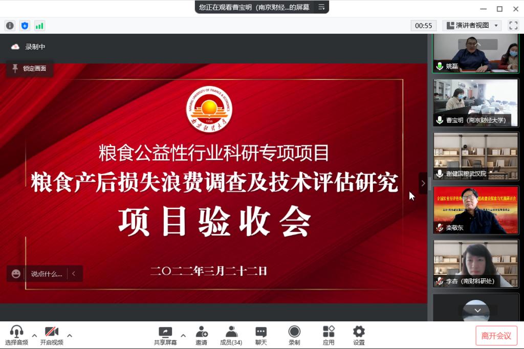 3月22日,国家粮食和物资储备局安全仓储与科技司和财务审计司共同组织召开了粮食公益性行业科研专项“粮食产后损失浪费调查及评估技术研究”项目验收会议,组织专家对项目技术任务完成情况以及项目经费预算执行与使用情况进行了验收。验收专家组由来自中国粮油学会、北京国贸东孚工程科技有限公司、中储粮南京分公司、郑州中粮科研设计院、国粮武汉科研设计院、东南大学、华中科技大学、南京农业大学、南京审计大学、安徽农业大学、河南工业大学、江苏天勤会计师事务所、江苏中天华夏会计师事务所的13位专家组成,郑州中粮科研设计院教授级高工唐学军担任专家组组长,中国粮油学会教授级高工于衍霞、江苏天勤会计师事务所注册会计师胡春才担任副组长。国家粮食和物资储备局安全仓储与科技司副司长张成志、科技处一级调研员(主持工作)姚磊、副处级干部管伟举,国家粮食和物资储备局财务审计司综合处杨梦雯,我校党委常委、副校长华仁海出席项目验收会议。会议由国家粮食和物资储备局安全仓储与科技司科技处负责人姚磊主持。