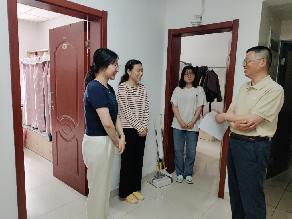 为推动党史学习教育走深走实,不断将党史学习教育成果转化为我为群众办实事的具体举措,深化落实“两在两同”建新功行动,5月26日下午,yl23411永利集团官网党总支书记、硕士支部政治辅导员张圣兵,硕士生支部书记、班主任刘婷走访学生宿舍,排查安全隐患,与毕业班学生近距离交流共同,听取学生意见、解答学生困惑、指导学生发展。