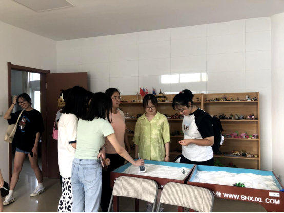 参观过程中,心理健康教育中心讲解员首先热情地给新生们普及心理健康相关知识,介绍中心的日常工作和心理咨询的预约方式,阐明心理健康教育中心会在学习、人际、恋爱和情感等方面为学生提供心理咨询和疏导,帮助大家更好地适应和发展。随后,在讲解员的带领下,新生们先后参观了个体心理咨询室,包括心理沙盘、音乐放松椅和休息室等。接着讲解员带领同学们到团体心理咨询室,通过群体成员们趣味接龙游戏互动体验,使得新生体验到互助活动,感受团体的凝聚力
