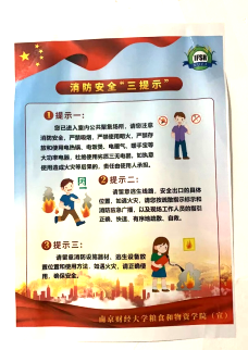 学生宿舍是人员密集场所,做好消防安全工作是学校各项工作的重中之重。活动中,院研会成员进入我院学生宿舍逐一排查安全隐患,在每间宿舍醒目位置张贴《消防安全“三提示”》宣传海报。并由研会工作人员向在校生宣讲消防安全提醒:严禁吸烟、明火和使用大功率电器;留意逃生线路、安全出口具体位置;留意消防器材、逃生设备的放置位置和使用方法。
