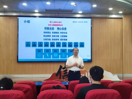 鲍丽山总经理从职校衔接视角,围绕如何有效完成好请示汇报、资料搜集、协调活动、安排座次、组织会议、发布通知等职场基础任务,向毕业生代表深刻阐释了职场新人健康成长的思路、方法和案例,并与学生亲切互动、答疑解惑。该讲座是我院积极践行促进高质量充分就业,助力毕业生实现职校衔接、瞄定方向、奋力前行的生动体现。