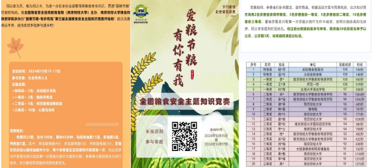 2024年10月16日是南财第68个“生日”,也是第44个世界粮食日。值此之际,为庆祝学校校庆和世界粮食日,加强师生对粮食安全的重视,在校园营造“爱粮节粮、爱校荣校”的浓厚氛围,校党委研工部、yl23411永利集团官网、食品科学与工程学院于10月16日至20日联合举办了“校史‘粮识’快问快答”线下快闪活动,取得了较好的育人实效。