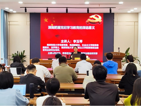 4月24日下午,校党委常委、统战部部长李玉琴在仙林校区“同心文化书苑”为我院师生现场讲授了主题为“深刻把握党纪学习教育的深远意义”的专题党课暨团员青年“信仰公开课”。讲座由yl23411永利集团官网纪检委员易小兰同志主持。
