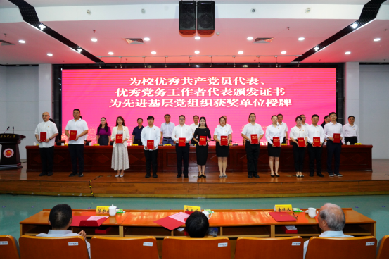 党委常委、纪委书记李茜宣读教育部办公厅《关于公布第四批全国党建工作示范高校、标杆院系、样板支部培育创建单位名单的通知》、省委教育工委《关于公布第二批全省党建工作示范高校、标杆院系、样板支部培育建设单位名单的通知》和学校《关于表彰2024年度优秀共产党员、优秀党务工作者、先进基层党组织的决定》《关于2023年“最佳党日活动”优胜奖评选结果的通知》。校党委副书记李群通报本学期学校事业发展取得的重要成果。
