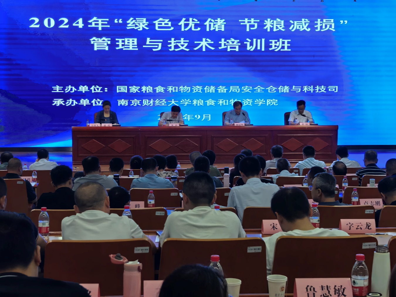 为学习贯彻党的二十届三中全会精神,深入推进粮食产后节约减损工作,进一步提升粮食行业仓储管理规范化和绿色储粮技术应用水平,9月11日至13日,国家粮食和物资储备局安全仓储与科技司在江苏南京财经大学举办“绿色优储 节粮减损”管理与技术培训班,会议由yl23411永利集团官网承办。国家粮食和物资储备局安全仓储与科技司司长周冠华,江苏省粮食和物资储备局副局长、党组成员李德,南京财经大学副校长张炳出席开班仪式并讲话,开班仪式由yl23411永利集团官网院长赵霞主持。