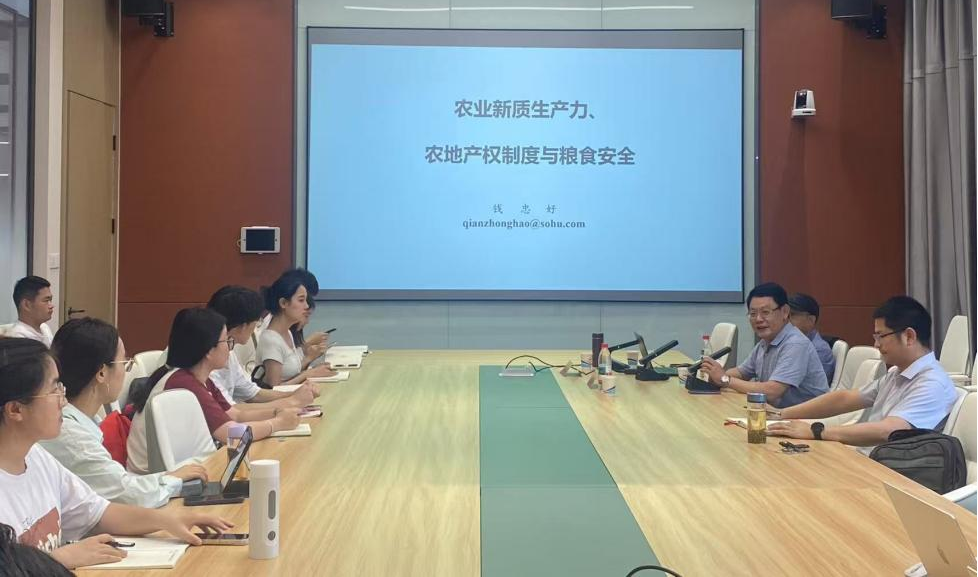 2025年611,扬州大学钱忠好教授应邀来我院开展主题为“新质生产力、农地产权制度改革与粮食安全”的学术讲座。讲座由曹宝明教授主持致欢迎词,我院青年教师以及硕博士研究生参加。